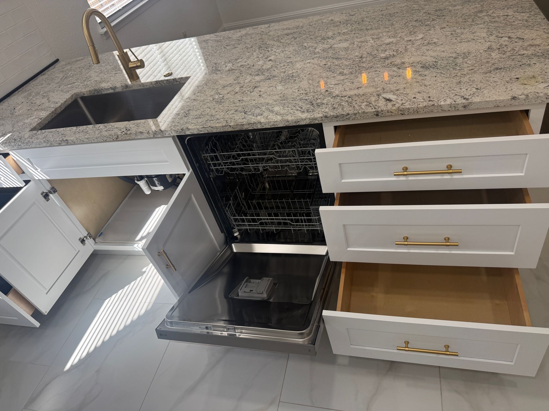 - Clean cabinets inside and out