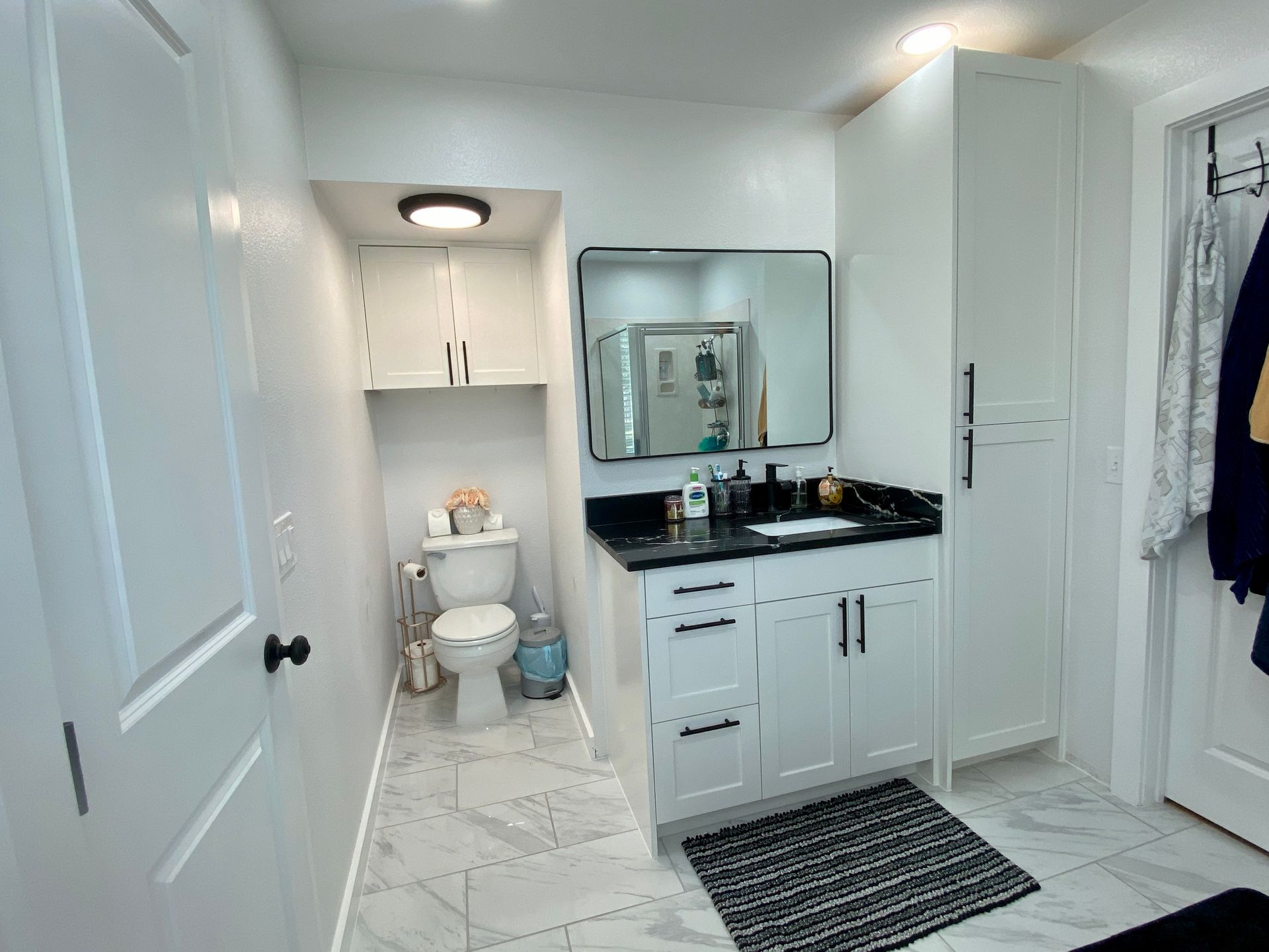 Bathroom Remodel – featuring new shaker-style cabinetry, quartz countertops, and custom built-ins